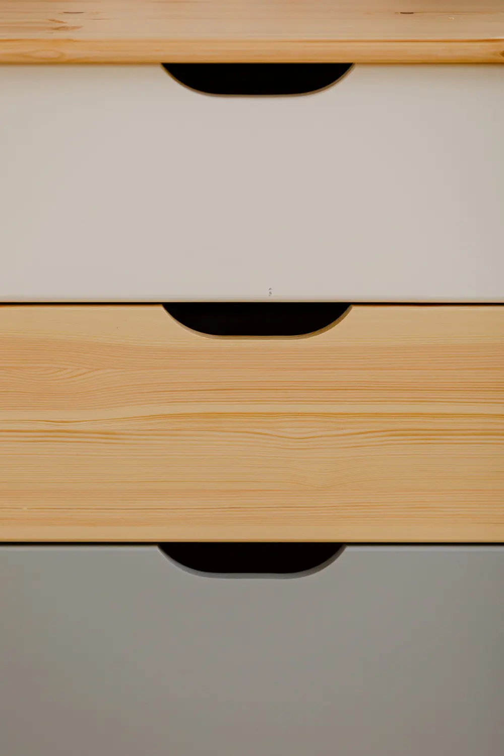 Фурнитура без доводчиков обеспечивает надёжную работу комода. Ручки по выбору — деревянные кнопки (по умолчанию), кружки, квадраты, сердечки, запилы (на фото).