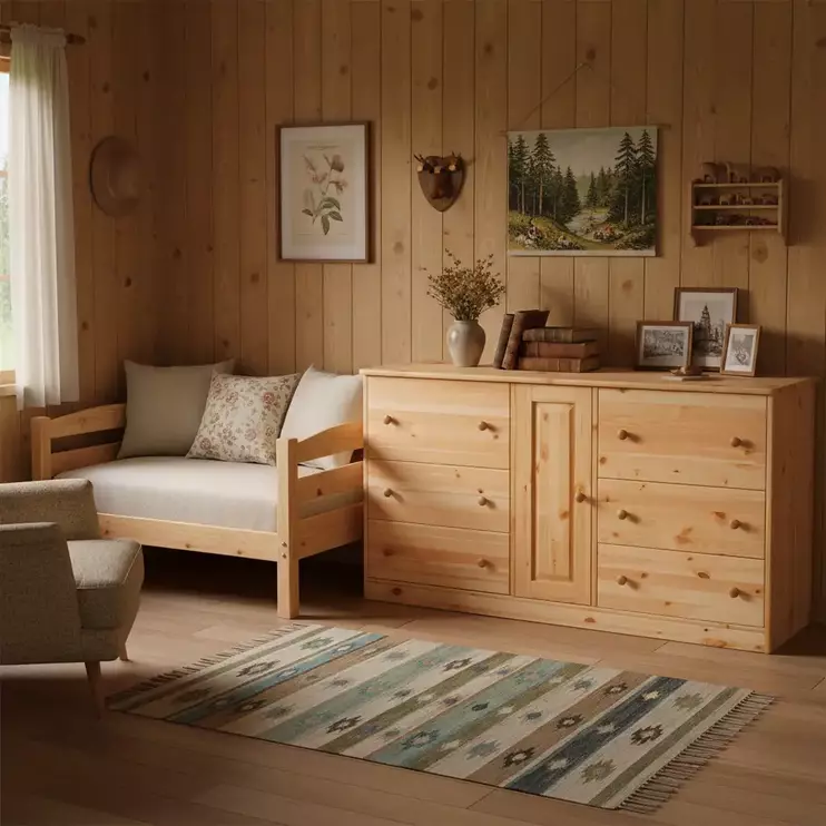 Материалы: массив сосны ручной сортировки, ДВП;