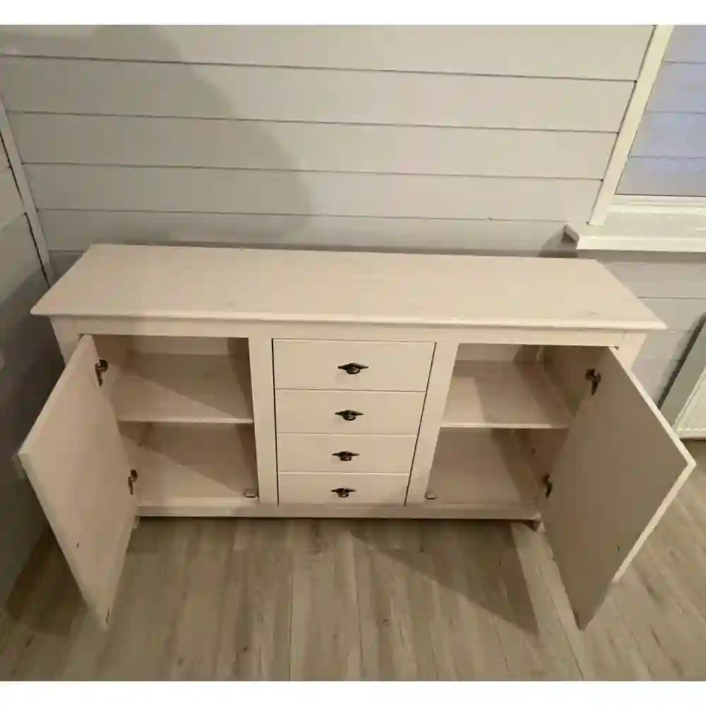 Классический комод "Рауна" 24 (цвет белый воск УКВ) из массива сосны для столовой, гостиной, прихожей или спальни