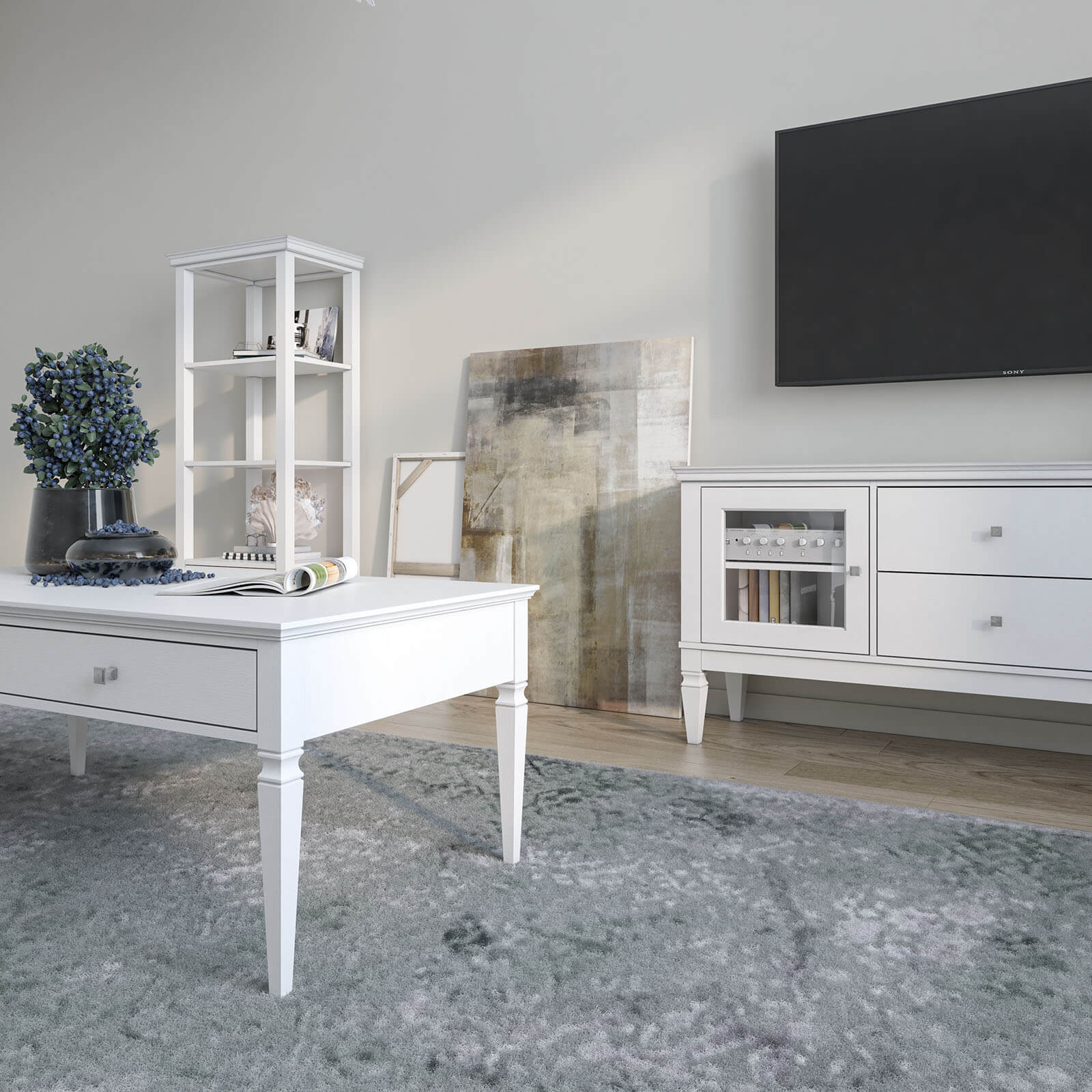 Модель изготовлена в цвете «белый лак», «белый лак/антик 24», «серый 7042/антик 24».